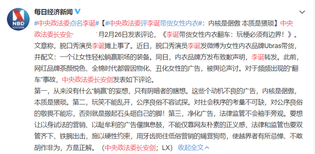 2月24日,李诞在社交平台为Ubras品牌女性内衣带货,博文中的文案却引发极大争议。